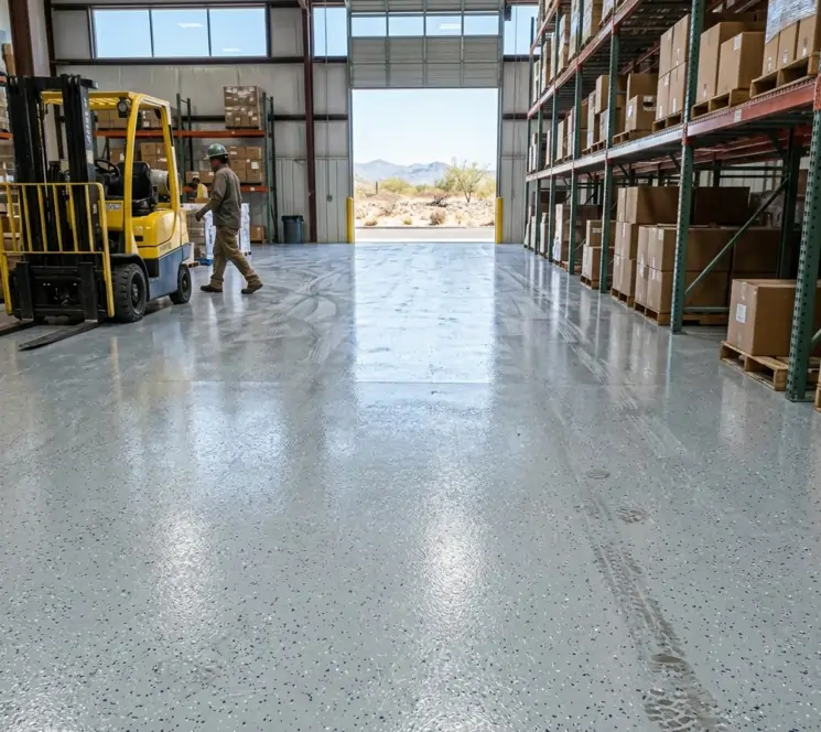 Epoxy flooring is one of the most popular choices for commercial and industrial spaces in Phoenix. It’s tough, easy to clean, chemical resistant, and available in a wide range of colors and finishes.