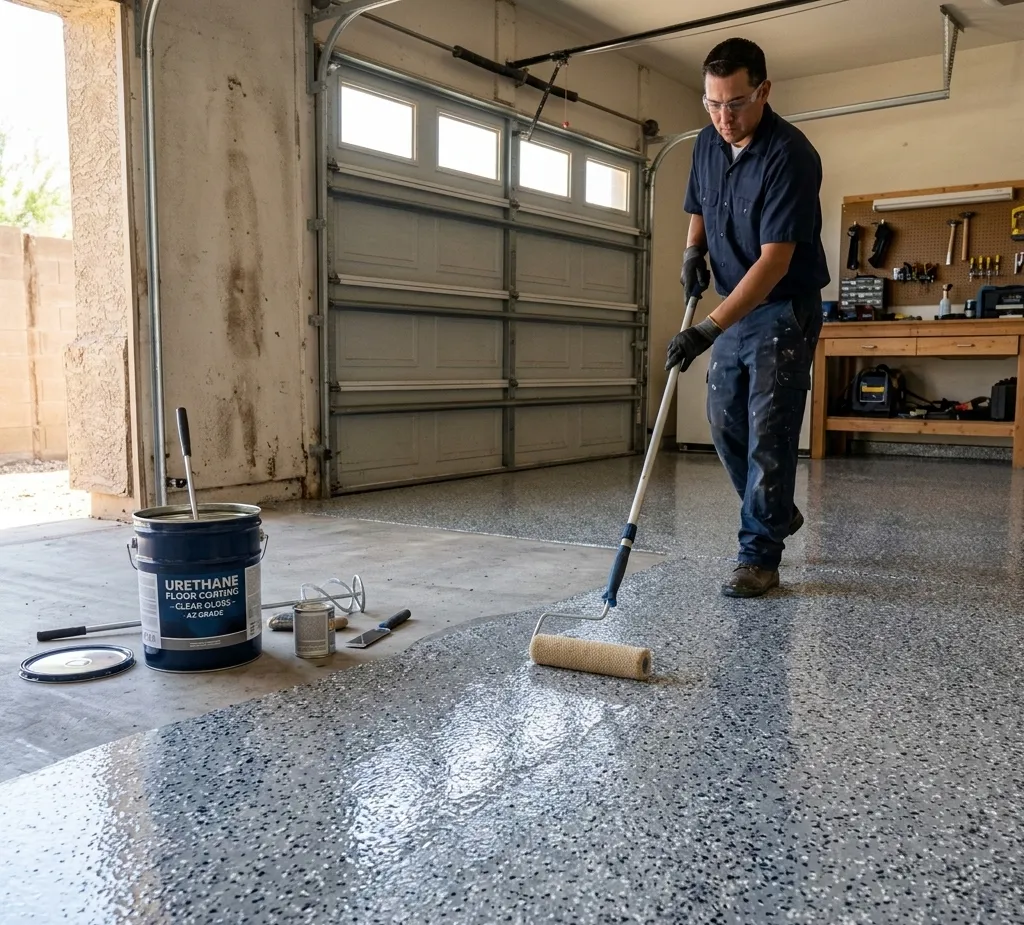 Polyaspartic is a fast-curing, UV-stable coating that works great for businesses that can’t afford long downtime. It cures in just a few hours, doesn’t yellow in Arizona’s intense sun, and is more scratch-resistant than standard epoxy. Best for car dealerships, retail spaces, outdoor areas, and commercial garages.